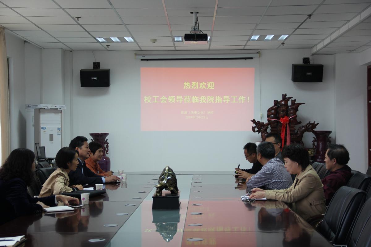 高金星表示,通过此次调研,看到旅游学院(历史文化学院、魏晋文化研究所)工会工作组织完善、制度健全、活动丰富、成效显著、特色鲜明,对学院的有益做法和特色工作表示赞赏。随后,高金星一行在尤建设等人的陪同下参观了“教工小家”,并交流了我院工会的相关理论研究成果。(旅游学院(历史文化学院、魏晋文化研究所)供稿)