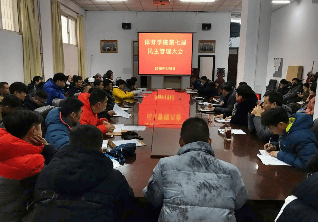 体育学院于2019年1月9日在体育学院会议室召开第七届民主管理大会,体育学院全体教职工参加此次会议。
