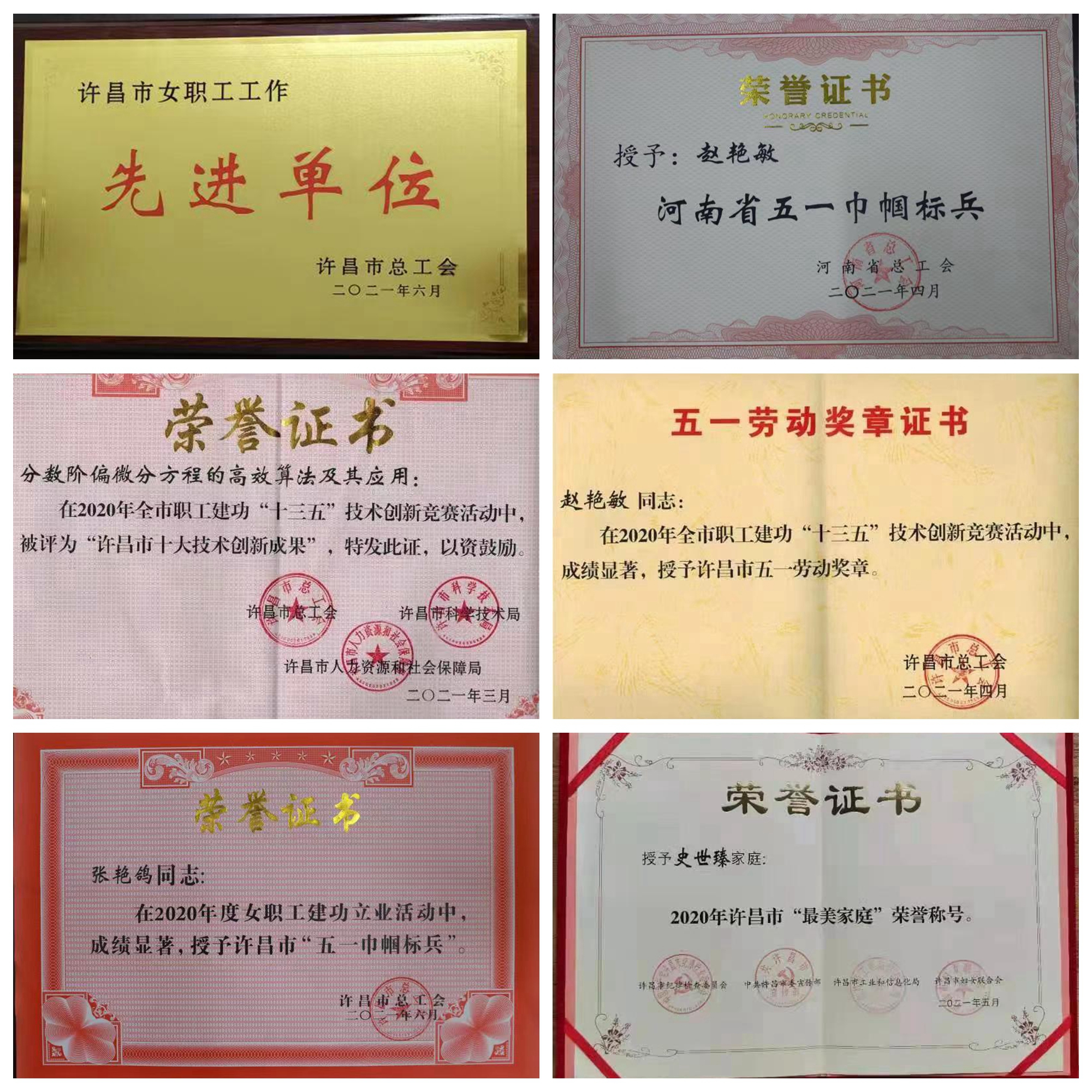 近日,河南省总工会和许昌市总工会表彰了一批先进集体和个人。我校工会女工委员会荣获“许昌市女工工作先进单位”。赵艳敏教授荣获河南省总工会“五一巾帼标兵”“许昌市五一劳动奖章”,赵艳敏团队成果《分数阶偏微分方程的高效算法及其应用》被评为“许昌市十大技术创新成果”。张艳鸽教授荣获许昌市“五一巾帼标兵”。史世臻家庭荣获许昌市“最美家庭”荣誉称号。