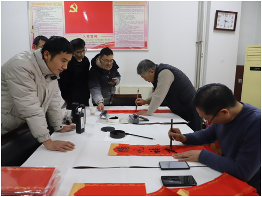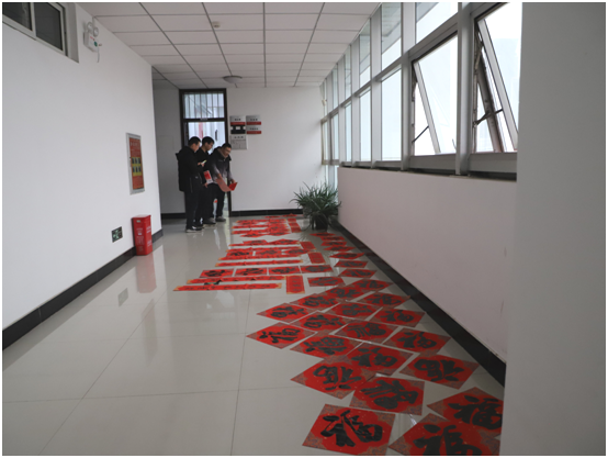“迎新年·送春联”是校工会举办的一项节庆活动,几位书法老师们共书写“福”字和春联近300幅。春联文化与书法艺术的亲密结合,是中国人过年的欢乐基因元素,更是独特的中华优秀传统文化,深受广大教职工的热烈欢迎。