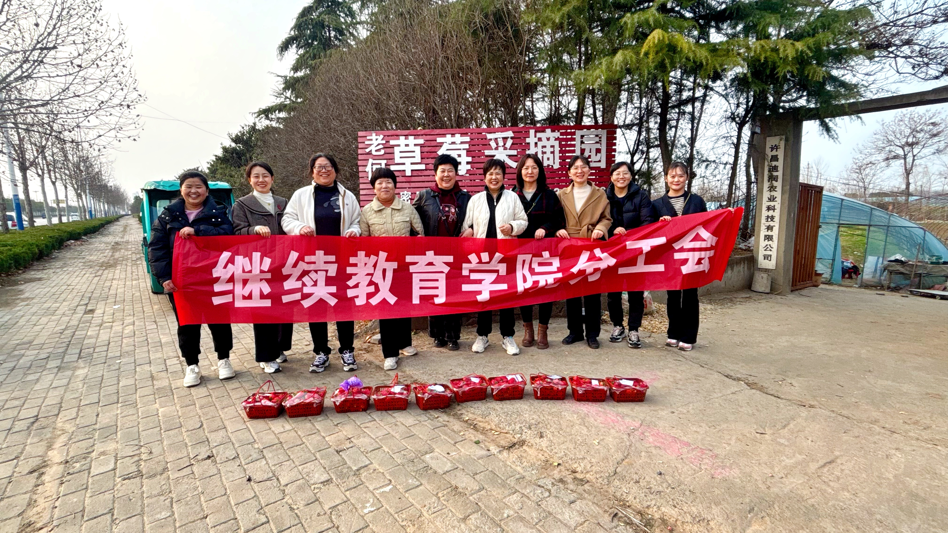 继续教育学院分工会开展了春日采摘活动,草莓园内果香四溢,蔬菜棚中绿意盎然,大家手提竹篮,一边采摘新鲜果蔬,一边分享生活趣事,欢声笑语不断。