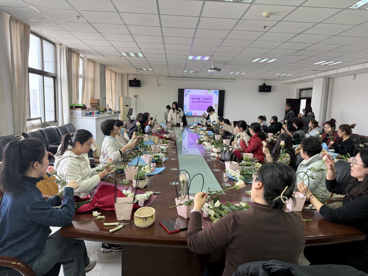 文史与传媒学院分工会开展了“花漾巾帼,文韵芳华”花艺DIY活动,女教职工们纷纷化身为“花艺大师”,根据自己的审美与创意,精心挑选花材与花器。在创作过程中,大家相互交流、彼此分享插花心得,现场气氛热烈而温馨。