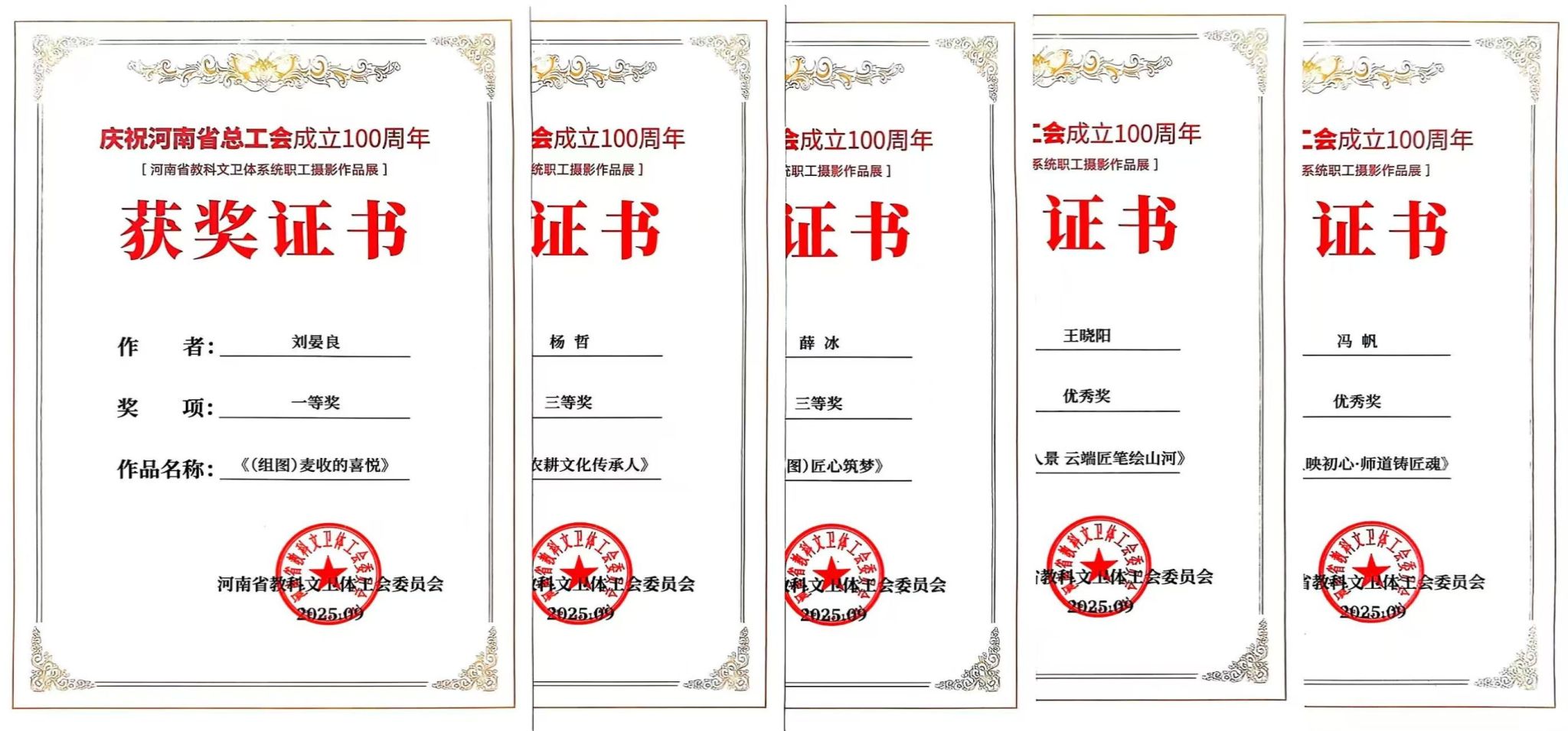 近日,从河南省教科文卫体工会获悉,我校5位教职工在关于“百年工运路·光影映初心”———庆祝河南省总工会成立100周年职工摄影作品展活动中喜获佳绩。